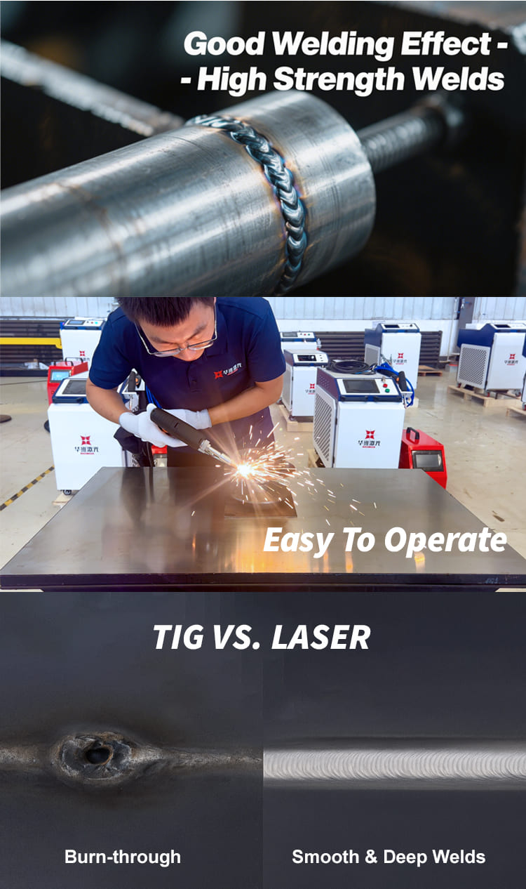 Esta máquina de soldadura láser HUAWEI LASER 1500W 2000W 3000W 4 en 1 ofrece a los compradores una solución versátil que combina soldadura, corte, limpieza y eliminación de óxido para un procesamiento eficiente de metales.