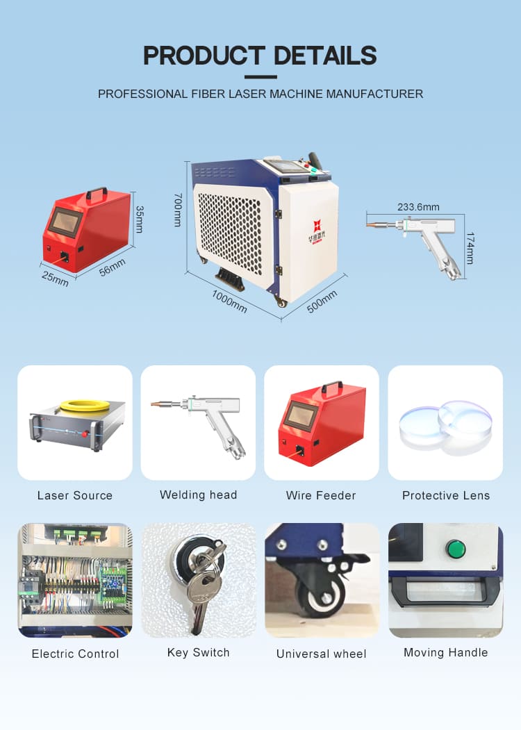 3.Operación integrada: la soldadura láser manual tiene las características de operación integrada, sin necesidad de soportes ni equipos adicionales, operación simple y conveniente, adecuada para una variedad de tareas de soldadura, lo que mejora la flexibilidad y la conveniencia.