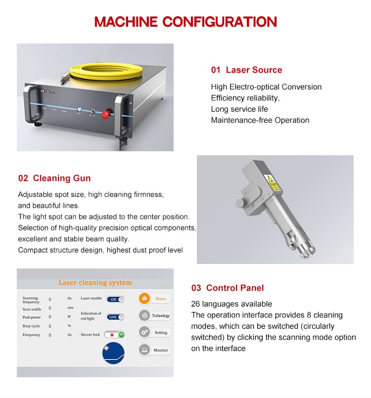 Como máquina de limpieza láser sin contacto, no daña el sustrato de las piezas, no ahorra consumibles, ahorra energía y protege el medio ambiente, y puede eliminar eficientemente resina, aceite, manchas, suciedad/óxido, revestimiento, revestimiento y pintura de la superficie de la pieza de trabajo para cumplir con los requisitos de limpieza en modelado complejo y posicionamiento fino en el campo de procesamiento industrial, lograr un mayor grado de limpieza del efecto de limpieza y beneficios de producción a un costo integral más bajo.